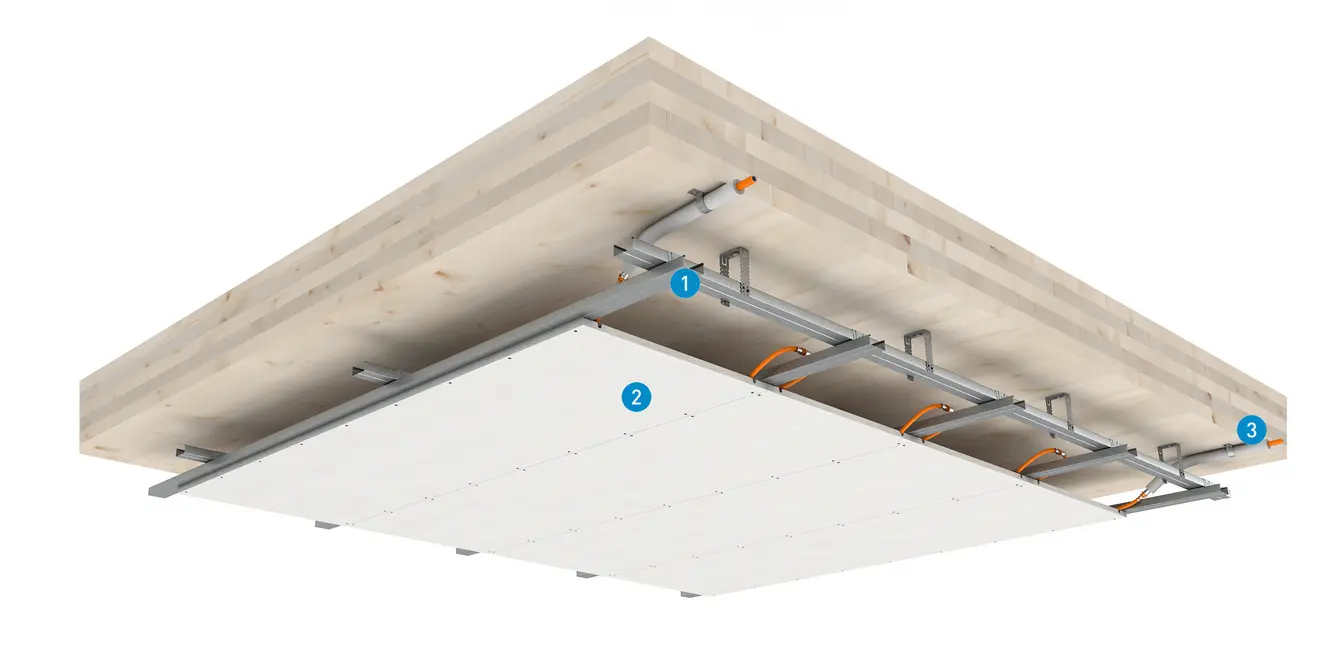 - Chauffage, rafraîchissement et plafonds finis tout en un.
