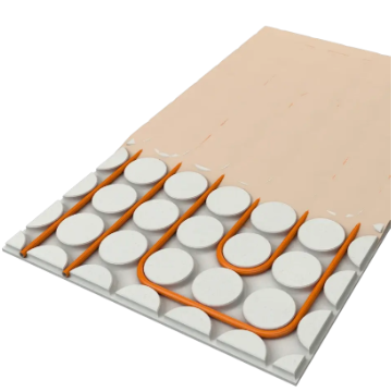 Il s’agit d’un système complet dans lequel les tuyaux VarioProfil 11.6×1,5 multicouche espacés de 10 cm sont pleinement intégrés entre les plaques fraisées et la pâte de remplissage garantissant un transfert thermique optimal.