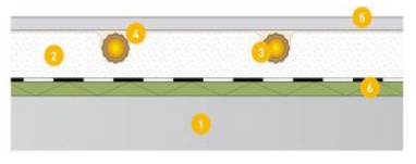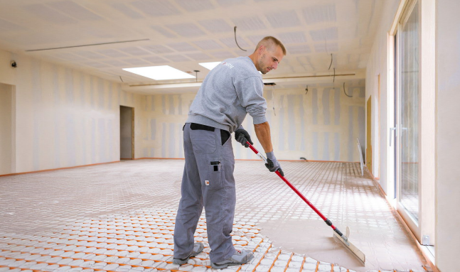 Cela empêche la formation de poches d’air dans le système de chauffage au sol, permettant ainsi à la chaleur de pénétrer librement dans le sol. Le matériau de remplissage possède une conductivité thermique élevée et transporte la chaleur jusqu’à la surface du sol en un rien de temps.